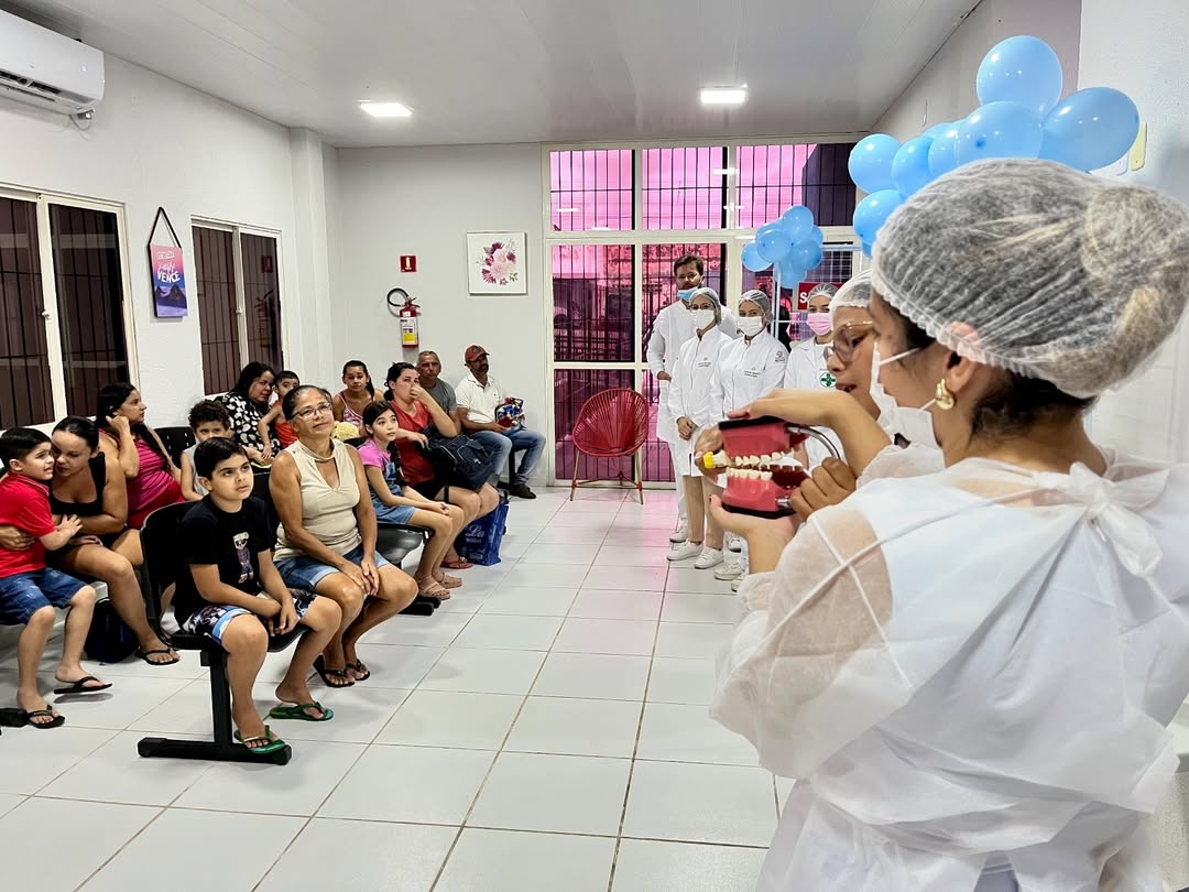 Durante o dia, foram realizadas palestras educativas, abordando práticas corretas de escovação e cuidados diários com a saúde bucal. Além disso, houve distribuição de kits de higiene, aplicação de flúor e avaliação dos usuários, que também foram encaminhados para atendimento odontológico quando necessário.
