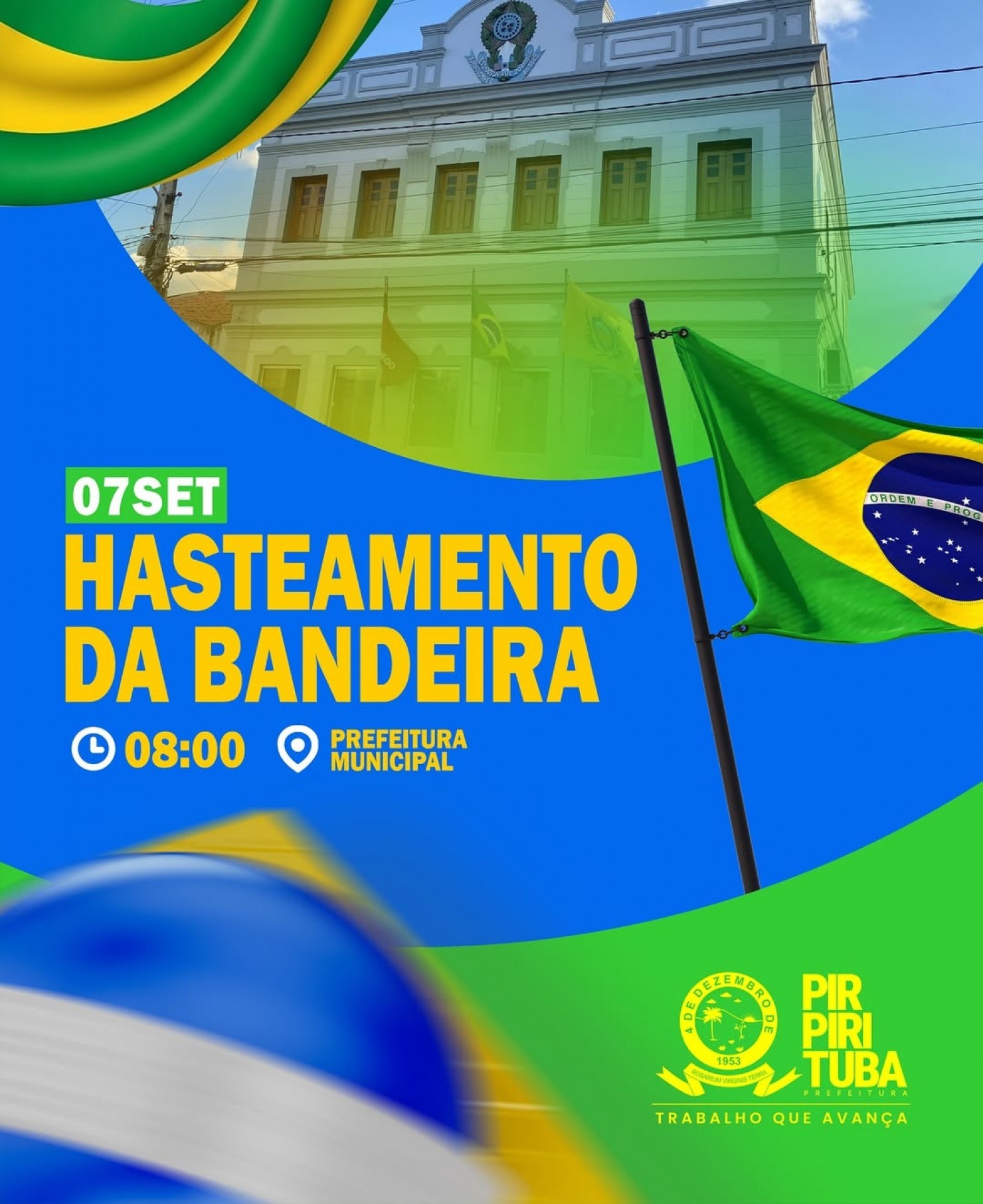 A Prefeitura convida toda a população para participar do tradicional Momento Cívico em comemoração ao Dia da Independência do Brasil, que será realizado neste domingo, 7 de setembro, em frente ao prédio da Prefeitura. A cerimônia tem início às 8h da manhã com o hasteamento das bandeiras do Brasil, do Estado e do Município, ao som do Hino Nacional, marcando esta data histórica que simboliza a luta e a conquista pela soberania brasileira.