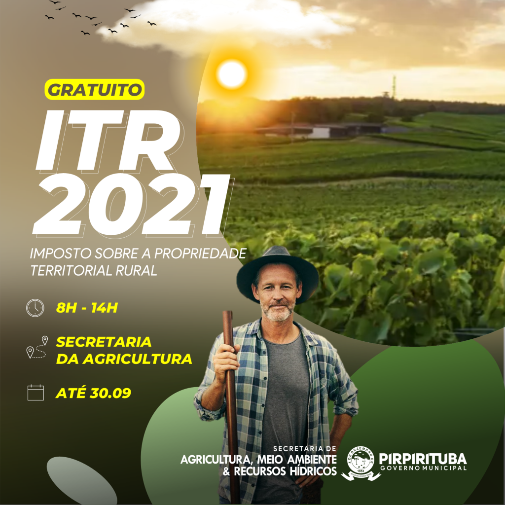 A declaração do ITR será realizada diariamente na sede da Secretaria de Agricultura, situada na Rua Cap. José Vicente, snº, (antiga creche), no horário das 8 às 14 horas. O prazo para a entrega da certidão começa nesta segunda-feira, 16 de agosto, e termina no dia 30 de setembro de 2021.