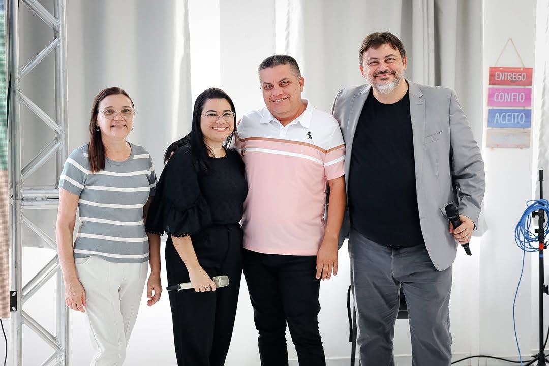 O Prefeito Danilo Rocha e o Vice - Prefeito Marcos Terto estiveram presentes na abertura do evento, parabenizando e encorajando os professores. Danilo reforçou o compromisso da gestão com a valorização dos professores e a busca por uma educação de qualidade para os nossos alunos.