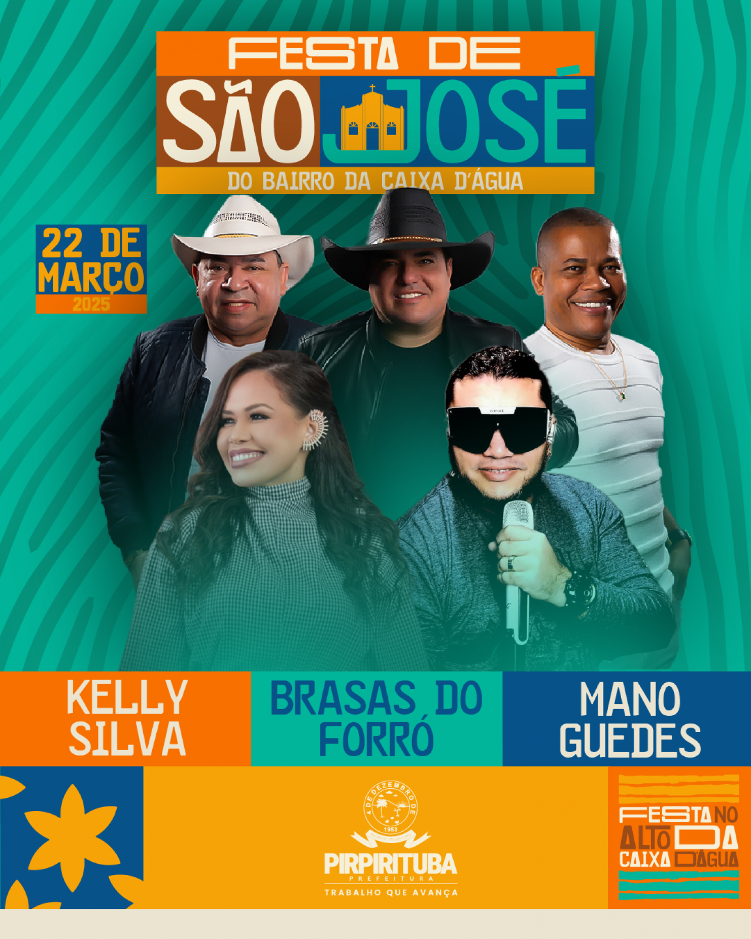 A Prefeitura de Pirpirituba, através da Secretaria de Cultura e Turismo, anunciou mais uma atração que irá compor a programação da Festa São José 2025. O Evento vem ganhando forma a cada ano que passa, se popularizando e se tornando uma das maiores festas de bairro da cidade. No sábado, dia 22 de Março, contaremos com os shows de Brasas do Forró, Kelly Silva e Mano Guedes. As escolhas das atrações visam manter a tradição, tendo o forró e o Brega como os ritmos mais marcantes da noite. Anote na sua agenda e venha curtir muito forró em uma noite pra lá de animada. Festa que encanta, tradição que se renova!