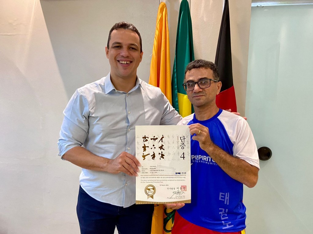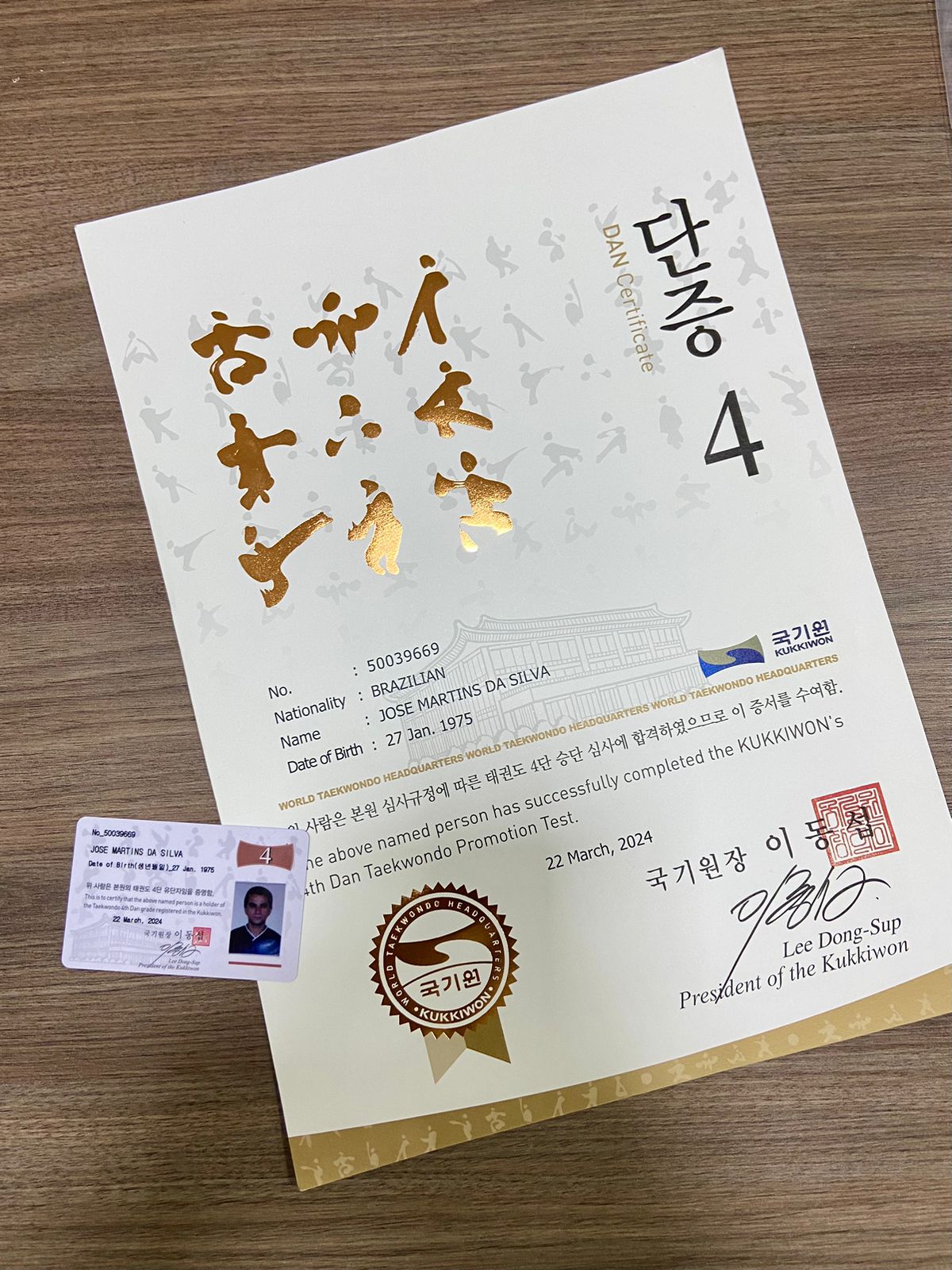 O professor José Martins da Silva, do Município de Pirpirituba, recebeu recentemente seu certificado de conclusão do curso de qualificação de professor e mestre de taekwondo pelo órgão máximo kukkiwon’s na Coreia do Sul, também conhecida como World Taekwondo Headquarters, é uma organização que processa as certificações dan do taekwondo. Além disso, a Kukkiwon realiza pesquisas e seminários de ensino através da World Taekwondo Academy, que treina e certifica instrutores de taekwondo. Essa formação foi realizada durante o mês de março de 2024, graças ao patrocínio e apoio dado através da prefeitura e secretaria de esportes de Pirpirituba, que segue apoiando e incentivando o esporte e atletas da nossa região. O atleta fez questão de registrar e agradecer pessoalmente ao Prefeito Didiu por todo apoio e incentivo.