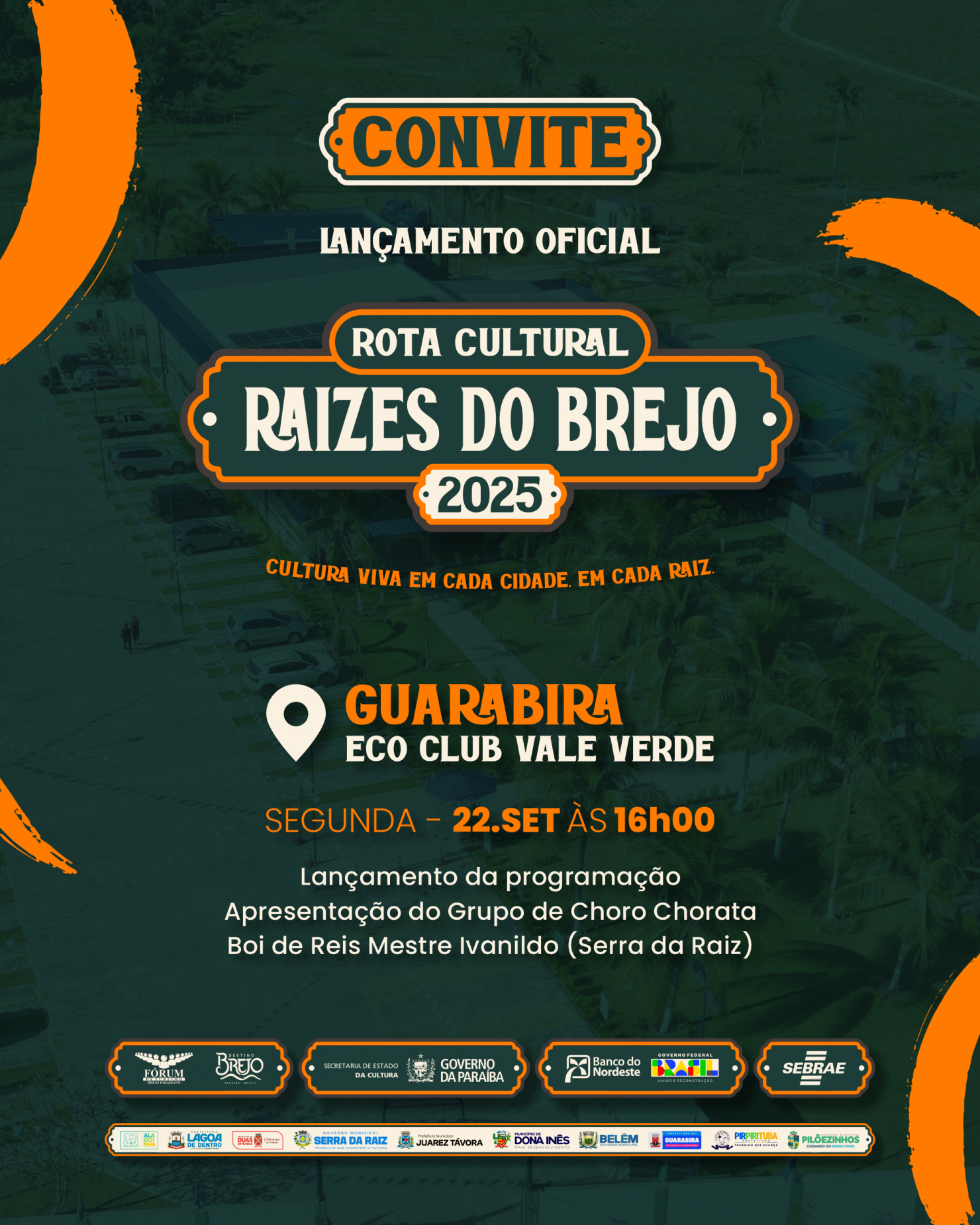 Pirpirituba mais uma vez marcará presença na Rota Cultural Raízes do Brejo, uma das iniciativas mais importantes do calendário turístico e cultural da Paraíba. O lançamento oficial da edição 2025 do projeto acontece nesta segunda-feira, 22 de setembro, às 16h, no Eco Club Vale Verde, em Guarabira. O evento reunirá representantes dos municípios participantes, autoridades políticas, secretários de cultura e turismo, além de artistas e profissionais envolvidos na produção da rota.