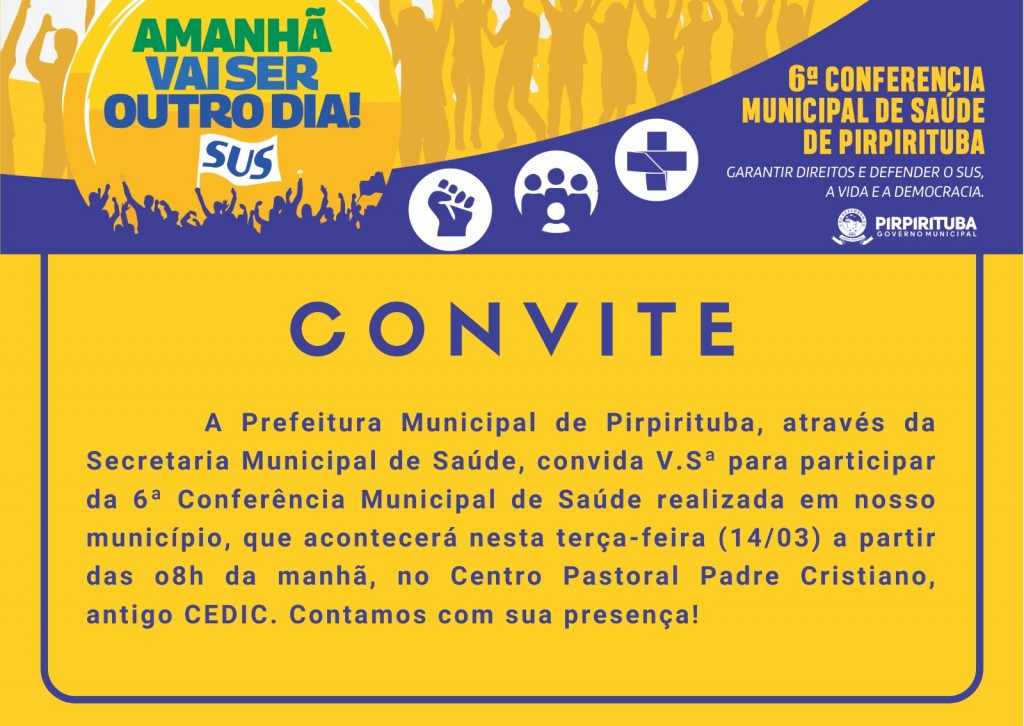 14:10 às 14:45 – Apresentação das propostas 6ª Conferência Municipal de Saúde