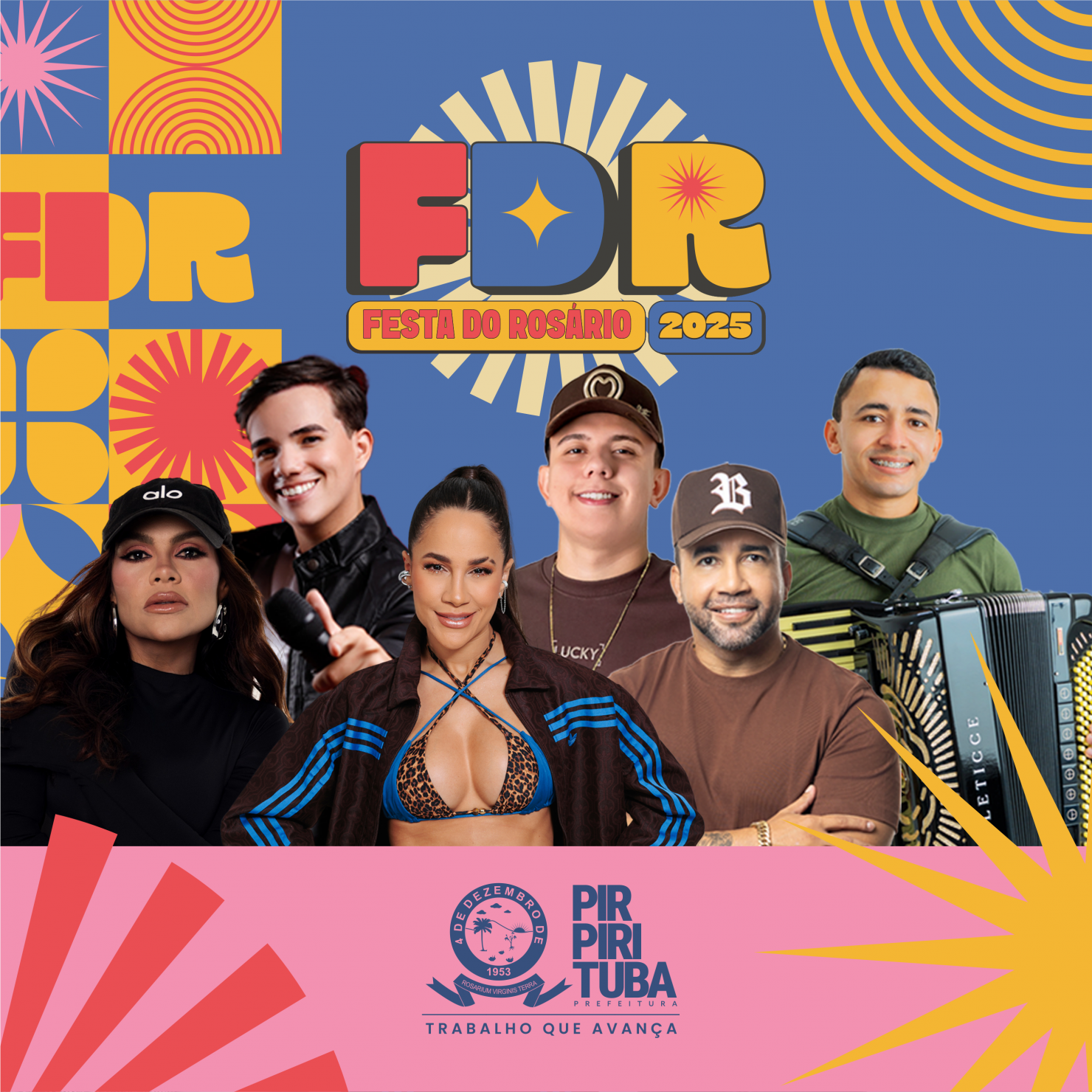 Entre as principais atrações anunciadas, estão artistas de renome nacional como Michele Andrade, Samyra Show e Adriana Arydes, que irão agitar a cidade com muita música. Além disso, a festa reserva espaço para os talentos locais, oferecendo uma oportunidade para que músicos e bandas da cidade mostrem seu trabalho para um público maior e mais diverso. Nettinho Vaqueiro e Jotta Ferraz são os artistas da casa que prometem fazer um grande show. A união entre o melhor da música local e nacional é uma das características que tornam a Festa do Rosário um evento único. Com uma mistura de fé, cultura e muita música, a Festa do Rosário 2025 promete ser inesquecível, consolidando ainda mais Pirpirituba como um dos principais destinos de festas tradicionais no interior da Paraíba.