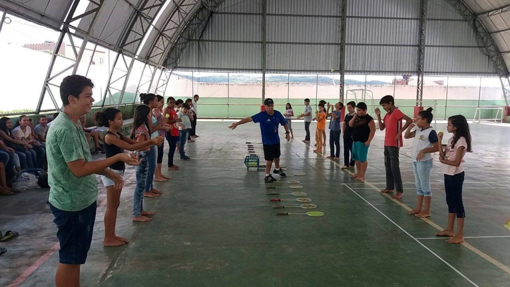 promovendo uma oficina de "Badminton" no Ginásio de Esportes da Escola Nossa